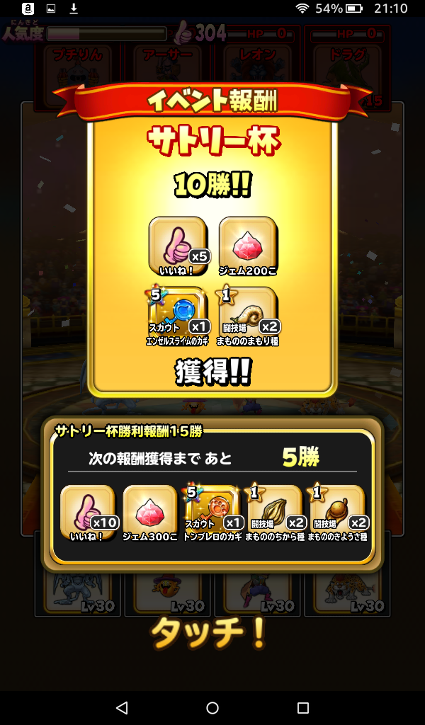 サトリー杯10勝でエンゼルスライムのカギをゲット!